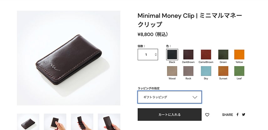 商品ページの「カートに入れる」ボタンの前に、「ラッピングの指定」の項目がありますので、そちらからラッピングを選択してください。